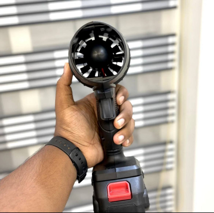 مناسب خشک کردن خودرو تمیز کردن گردو خاک و آتیش زدن یک جت فن بسیار بسیار پرقدرت مخصوص سفر و خانه با یک باطری لیتیوم 48 w به همراه شارژر